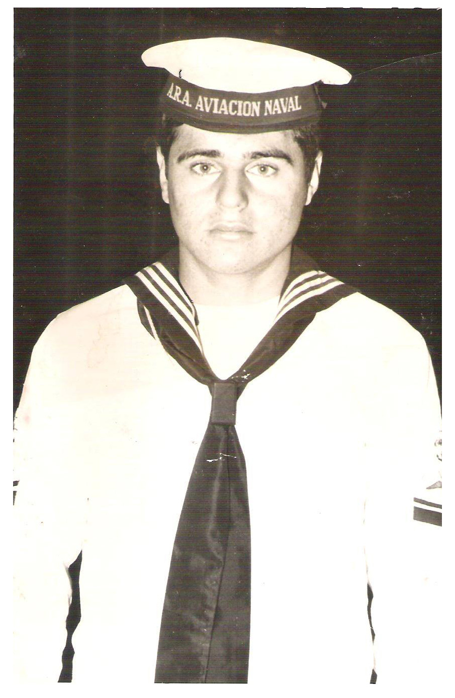Un día, de paseo con mi papá por el aeroclub de la localidad de la Matanza, Pcia. de Buenos Aires, consideré tomar el curso para llegar a ser piloto civil en avión monomotor. Para lograrlo, necesitaba 40 horas de vuelo diurno para la primer licencia y otras 40 de vuelo nocturno para completar la segunda etapa. En ese entonces, la hora de vuelo tenía un costo de 150 dólares, lo que era absolutamente inaccesible para mi familia. Esta situación me llevó a considerar la instrucción militar como vía posible para llegar a cumplir mi sueño. Ingresé en la Escuela de Suboficiales Mecánicos de la Armada Argentina (conocida en ese entonces como ESMA). Mi esmero dio su fruto cuando logré que me incorporaran en el curso de Aviación Naval. De allí, pasé a la Base Aeronaval Comandante Espora en la ciudad de Bahía Blanca y en 1982 culminé en las Islas Malvinas, a partir del conflicto bélico de ese entonces. Mi función era colaborar durante los vuelos de exploración y búsqueda de naves enemigas.